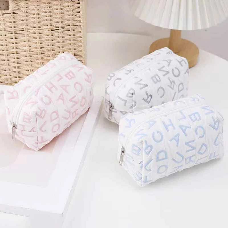 Private label your own Letter Simple Cosmetic Bag with AQ Gimel Cosmetics, the best wholesale personalized makeup bags supplier, 30pcs minimum to rebrand your own cosmetic bag collection, large variety of high quality white label makeup bags are waiting for you to choose, add products into your cart and submit your logo, you will receive ready-to-sell products under your brand name in 3-4 weeks, all you need to focus on is marketing!
