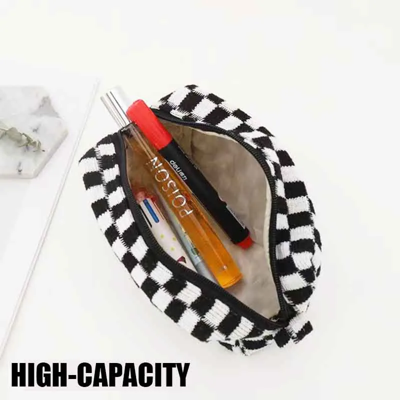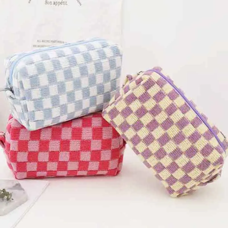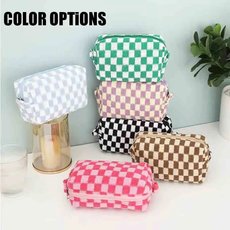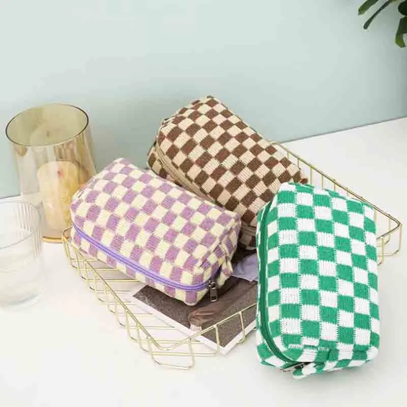 Introducing our timeless Plaid Knitted Cosmetic Bag, the latest addition to our private label bags collection for cosmetics. This classic and simple bag features a soft and smooth touch, making it a luxurious yet practical accessory for beauty enthusiasts. With its portable design and high capacity, this bag is perfect for beauty on the go. Additionally, the option to customize it with your logo and benefit from a low minimum order requirement makes it an ideal choice for custom cosmetic bags wholesale. Elevate your brand with our private label bags and offer your customers a sophisticated and functional option that seamlessly combines elegance and convenience.
