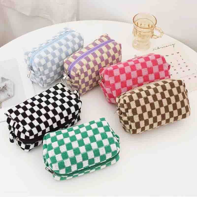 Private label your own Plaid Knitted Cosmetic Bag with AQ Gimel Cosmetics, the best wholesale personalized makeup bags supplier, 30pcs minimum to rebrand your own cosmetic bag collection, large variety of high quality white label makeup bags are waiting for you to choose, add products into your cart and submit your logo, you will receive ready-to-sell products under your brand name in 3-4 weeks, all you need to focus on is marketing!