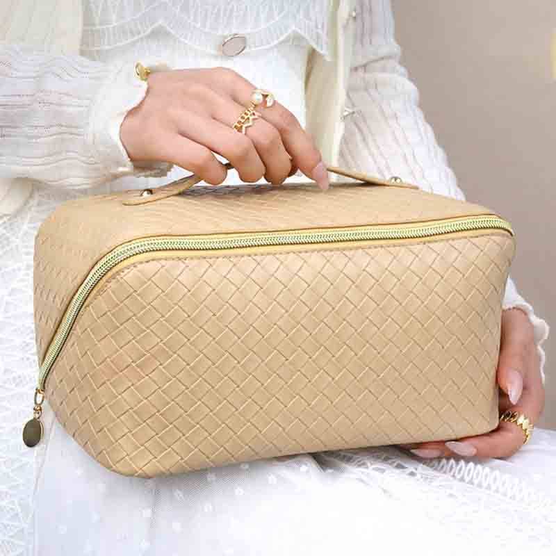 Introducing our exclusive Portable Woven Cosmetic Bag, a revolutionary addition to our private label bags for cosmetics. Crafted from waterproof PU material, this innovative cosmetic bag features neat wiring, a portable design, and impressive high capacity, making it a must-have for beauty enthusiasts on the go. Elevate your brand with our private label bags and provide your customers with a premium, waterproof cosmetic bag that seamlessly combines functionality and style.