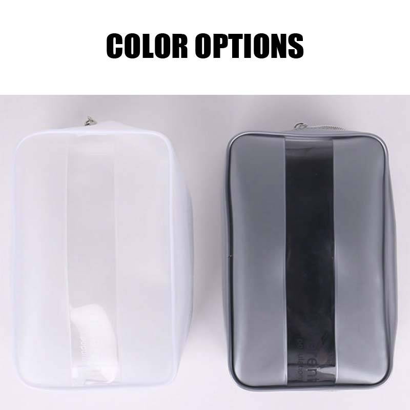 Experience the perfect blend of style and functionality with our Transparent Splicing Makeup Bag. Masterfully crafted from high-quality PVC and PU materials, this makeup bag is designed to endure, boasting wear-resistant and durable characteristics that promise a lasting service. The smooth zipper glides effortlessly, ensuring easy access to your beauty essentials, while the intensive stitches add an extra layer of security, keeping your items safely tucked away. No need to worry about spills or splashes; with its waterproof feature, your cosmetics are always protected.